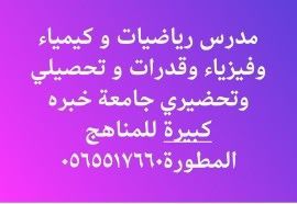 مدرس رياضيات وكيمياء وفيزياء وقدرات وتحصيلي وتحضيري جامعة خبرة كبيرة