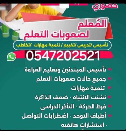 معلم تربية خاصه وصعوبات التعلم تأسيس ومتابعه جميع فئات ذوي الاعاقة
