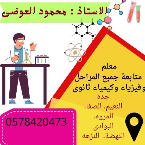 معلم كيمياء وعلوم وفيزياء معلم علوم والرياضيات ابتدائي ومتوسط. معلم متابعة جميع المراحل