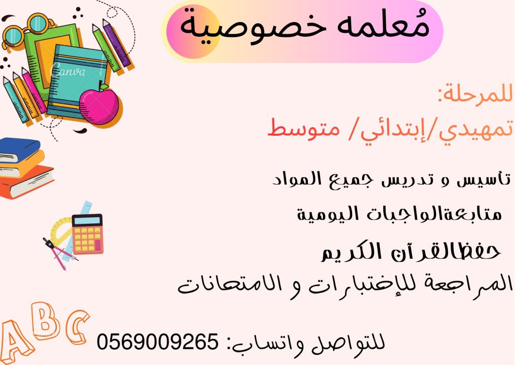 معلمة خصوصية سودانيه تأسيس جميع المواد بحي الرويس جدة