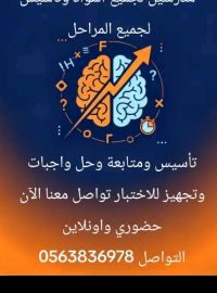 مدرسين لجميع المواد لجميع المراحل بالاضافة الى القدرات الكمي واللفظي حصص حضوري أو اونلاين