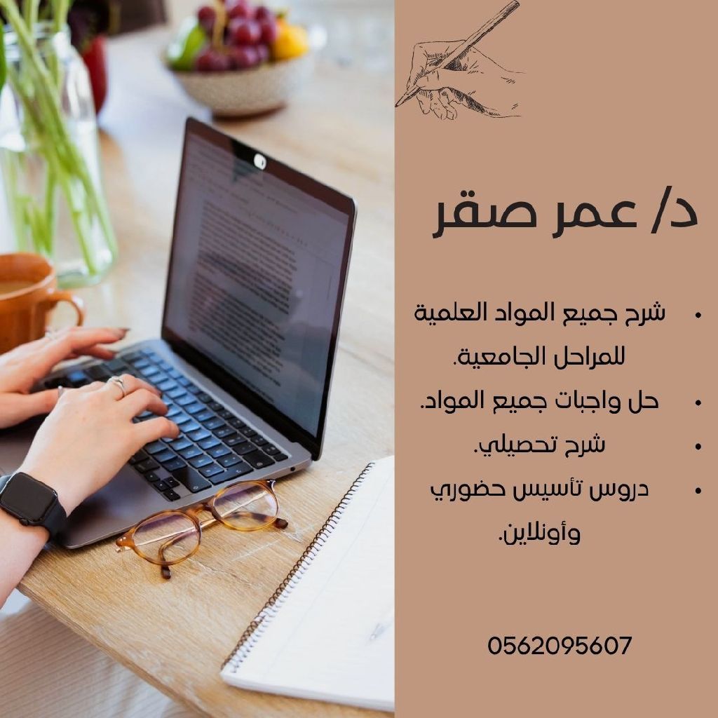 شرح جميع المواد العلمية للمرحلة الجامعية وحل واجبات جميع المراحل التعليمية