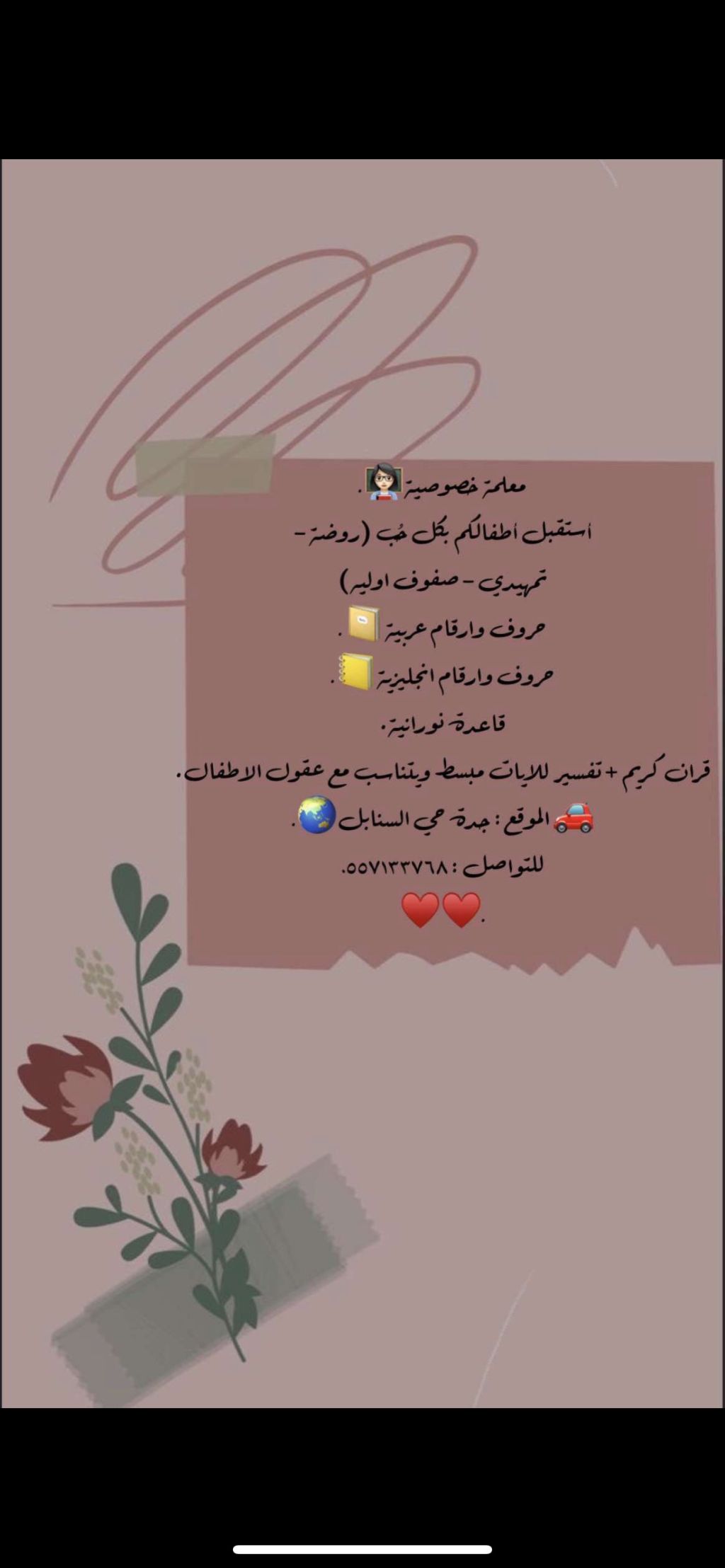 معلمه لصفوف الأولية خبرة من سنوات رائعه بمعنى الكلمه مخلصه وأمينه جدا في تدريسها في جدة
