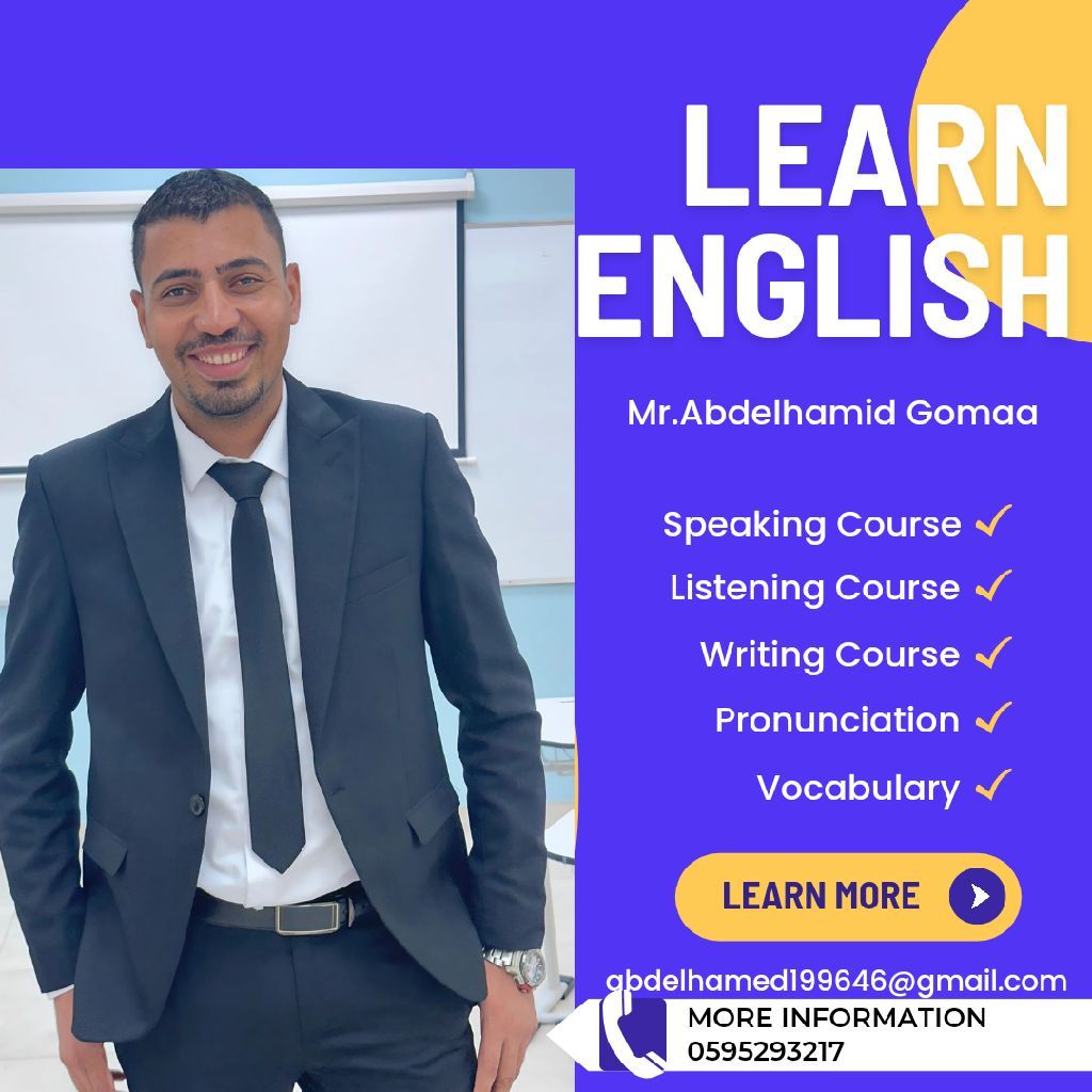 خبرة كبيرة جدا في تأسيس الصفوف الأولية وشرح كل مقررات اللغة الانجليزية تأسيس اللغة الانجليزية بأحدث الاستراتيجيات تدريس اللغة الانجليزية بطرق سهلة ميسرة لجميع المراحل حتى الجامعة التركيز علي المحادثة وتحدث اللغة بكل طلاقة التركيز علي الأنشطة التفاعلية مما يجعل الطالب مواكب لأحدث تطورات اللغة أول بأول حل الواجبات وعمل الأبحاث والتدقيق اللغوي باللغتين العربية والانجليزية للتواصل عبر