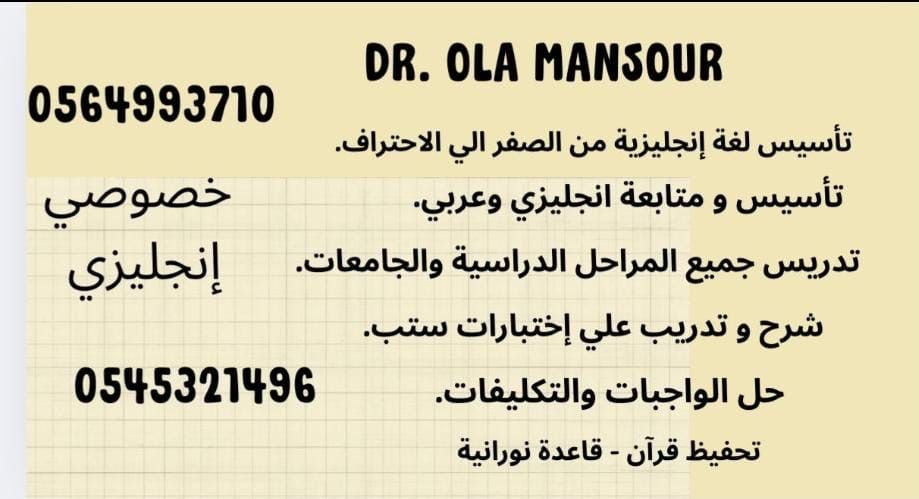 معلمة/ مدرسة لغة انجليزية جميع المراحل الدراسية تأسيس من الصفر الى الاحتراف دورات ستب وكورسات فوناتكس (صوتيات) تعليم المحادثات والقراءة + تعليم القاعدة النورانية وتحفيظ القران