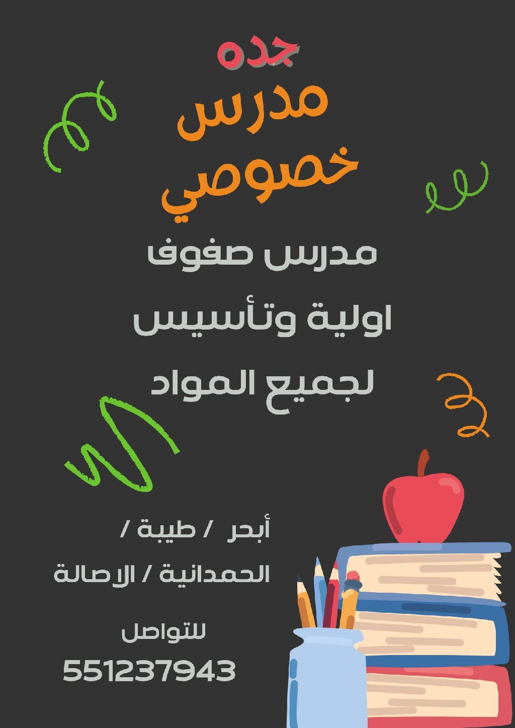 أنا مدرس خصوصي صفوف أولية وتأسيس، أساعد الطالب علي المز اكرة والمراجعة الدورية واختبارات خفيفة بطرق ترفيهية تساعد الطالب علي حب الدارسة