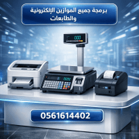 يوجد لدينا برمجة وصيانة جميع أنواع الميزاين الالكترونية حق الباركود وصيانة اجهزة الكاشير وبرمجة طابعات الفواتير والباركود وبرامج كاشير بأسعار رمزيه كل شيء يتم وأنت بمكانك عن طريق برنامج الأني ديسك