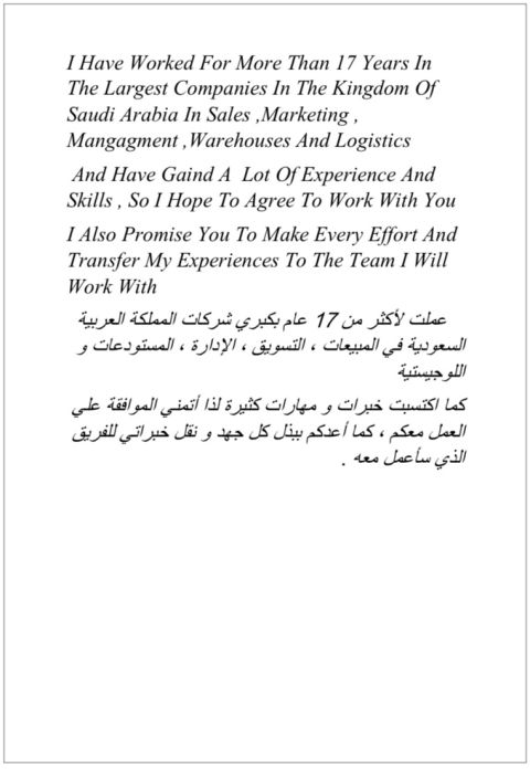 خبرة كبيرة في المبيعات، التسويق، الإدارة، المستودعات واللوجستية بكبرى شركات المملكة - تأشيرة جديدة وابحث عن فرصة مناسبة ويفضل المنطقة الغربية