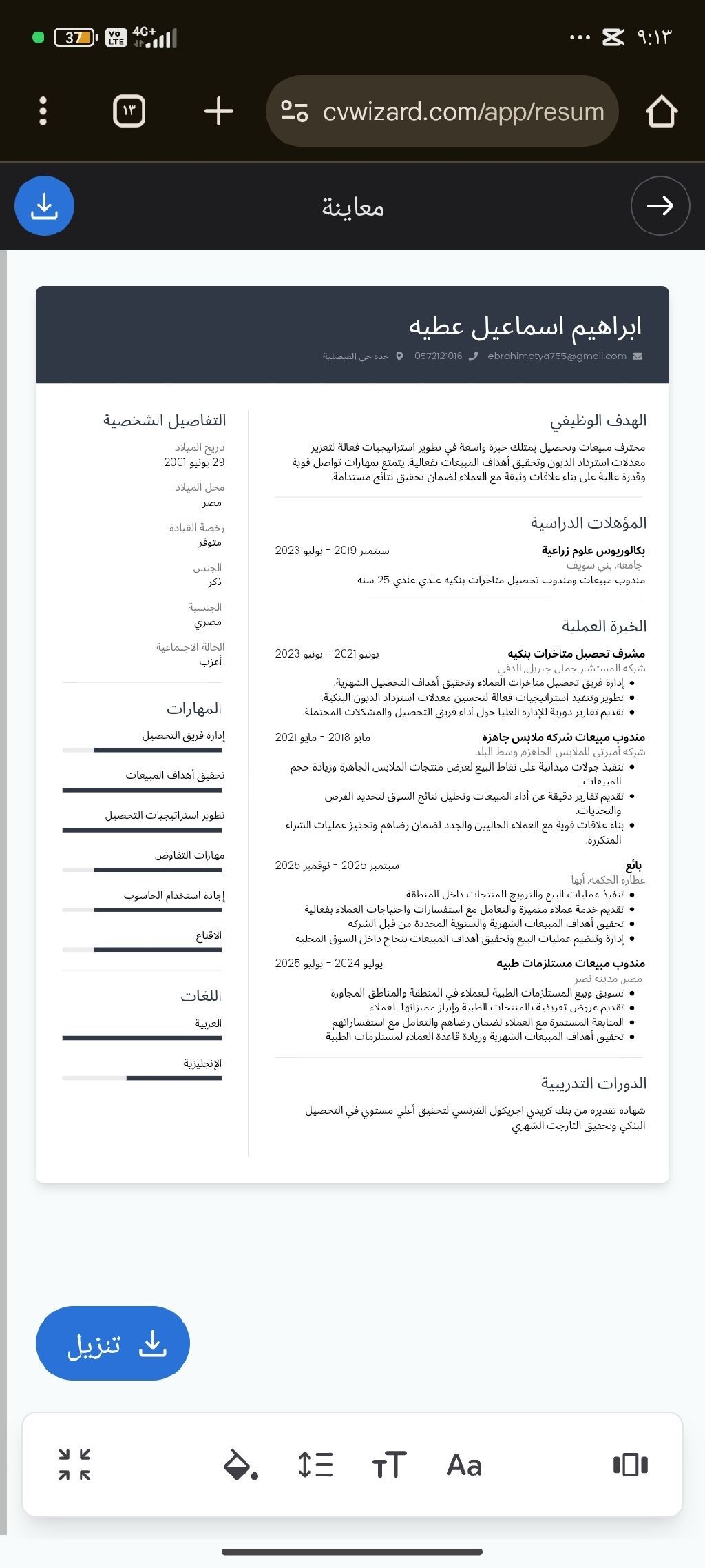 مندوب مبيعات عندي 25 سنة ابحث عن عمل موجود في جدة متاح رخصة قيادة وإقامة سارية