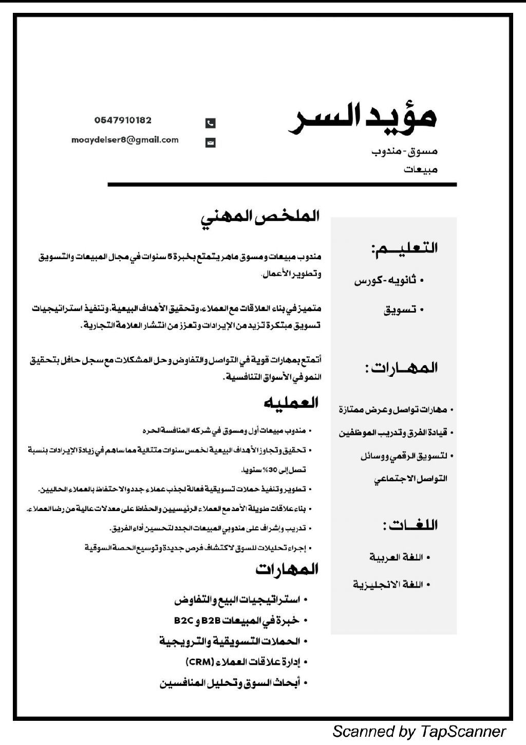 يطلب عمل مبيعات وتسويق في السعودية
