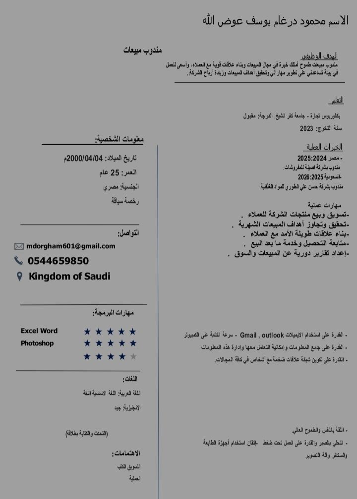 مندوب مبيعات خبرة بمجال المبيعات يبحث عن عمل في جدة أو أي منطقة أخرى