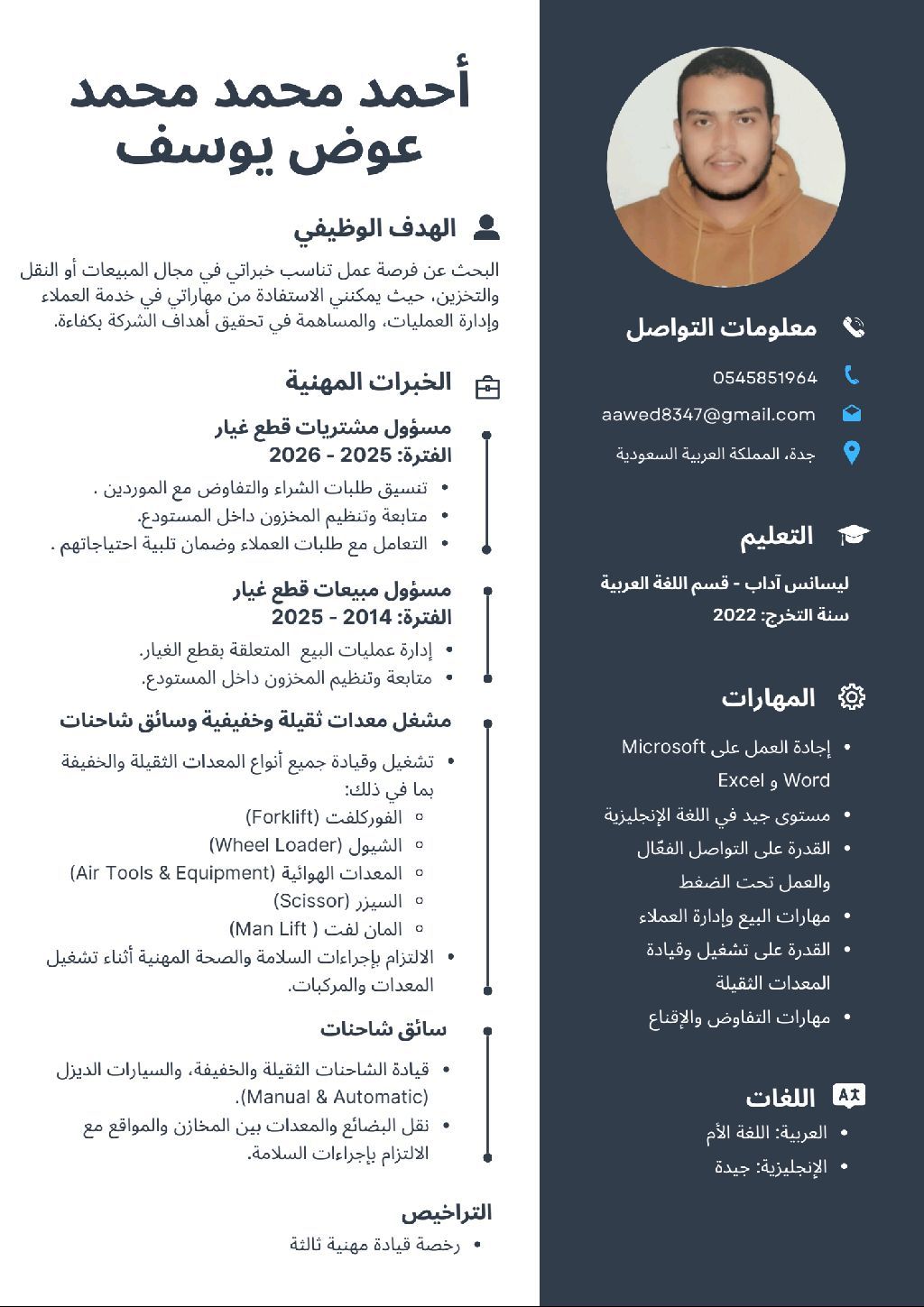 ابحث عن فرصة عمل مسؤول مبيعات قطع غيار ومسؤول مشتريات وسائق سيارات ومعدات شيول ورافعة شوكية ومان لفت وسيزر