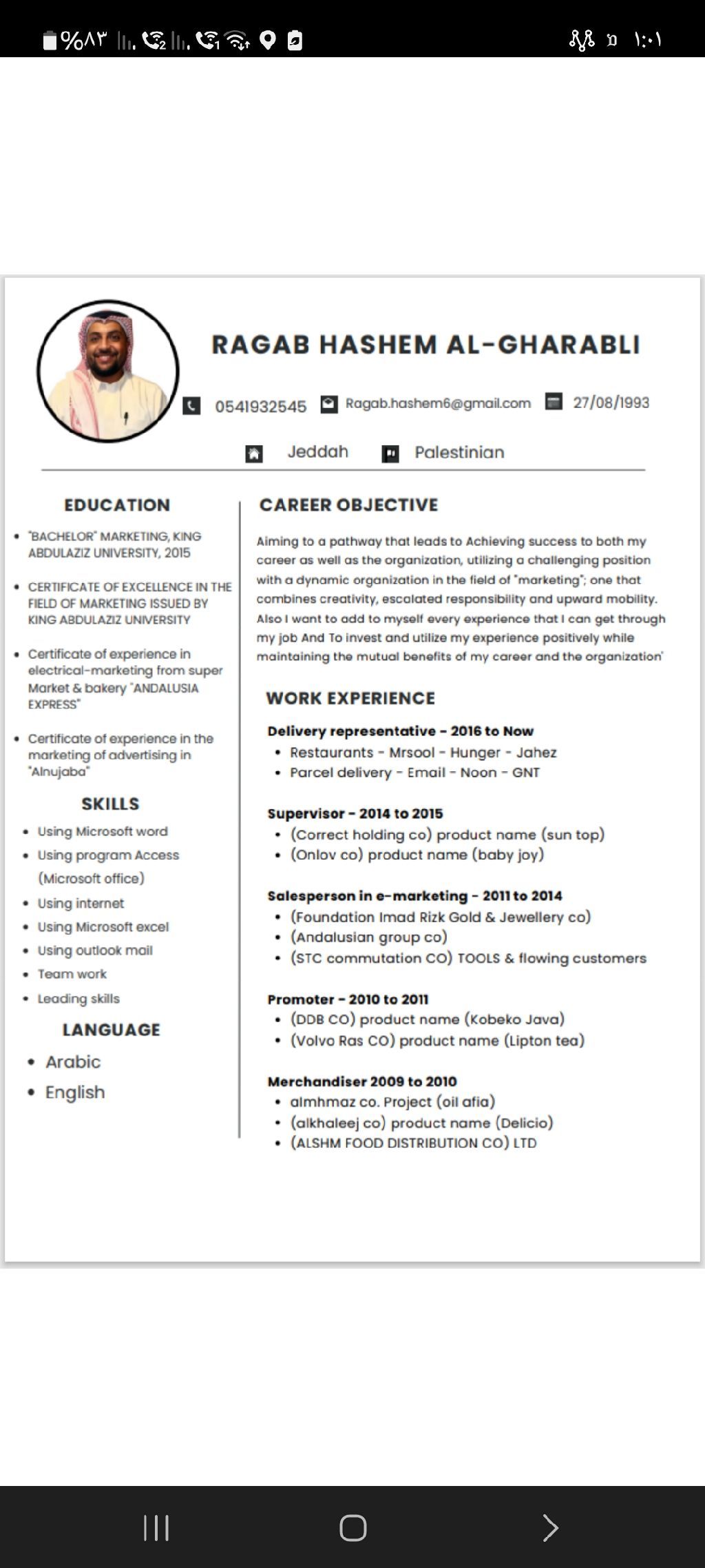 أنا رجب هاشم فلسطيني، العمر 31 عام ابحث عن عمل خبرات في توصيل الطلب مشنداير مندوب المبيعات مندوب مشتريات مشرف مندوبي التوصيل خبرة في التوصيل أكثر من 9 سنوات