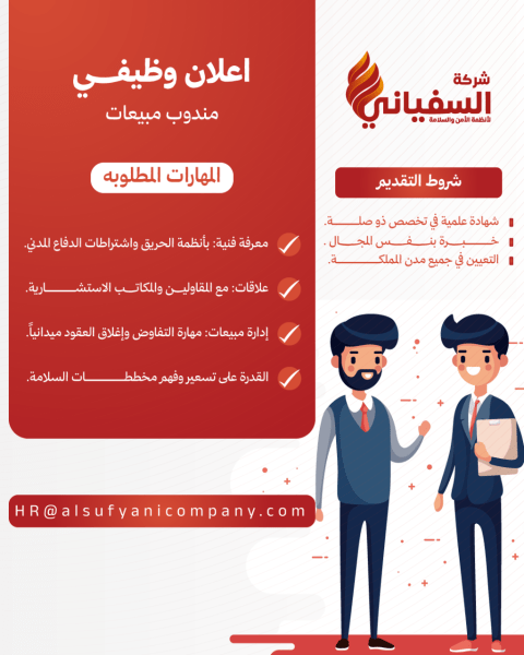 مطلوب مندوب مبيعات مجال الأمن والسلامة شرط الخبرة في جدة ويكون ع دراية كاملة بمدينة جدة وعنده قاعدة عملاء