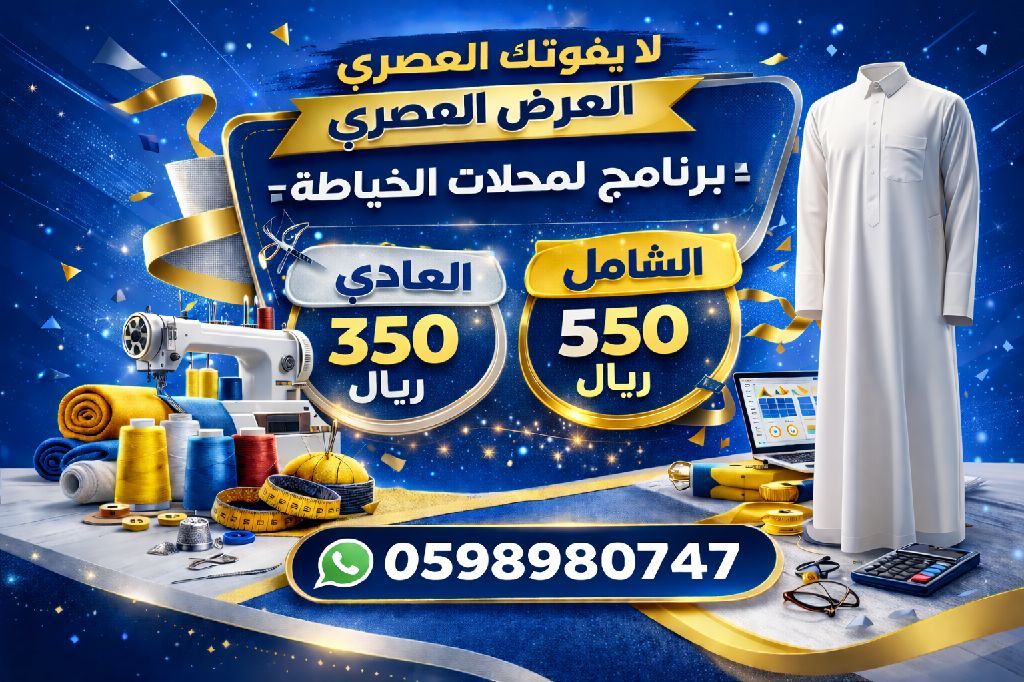 العرض العصري برنامج لمحلات الخياطة برنامج يساعدك على تنظيم العمل في محل الخياطة بسهولة وسرعة، بدون اشتراك سنوي. المميزات البحث عن الزبون بسرعة باستخدام الاسم أو رقم الجوال طباعة فاتورة صغيرة وسريعة للزبون حفظ المقاسات لكل زبون مع امكانية طباعتها عرض تفاصيل الفاتورة المختصرة رقم الفاتورة التاريخ اسم الزبون عدد الثياب القيمة المبلغ المدفوع المبلغ المتبقي طباعة المقاسات على ورق A4