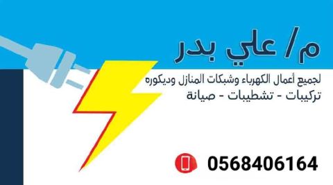 معلم كهرباء على بدر لجميع أعمال الكهرباء المنازل تأسيس تشطيب صيانة خبرة في تركيب بروفايل لد والتيار الخفيف سرعة اتقان أسعار مناسبة