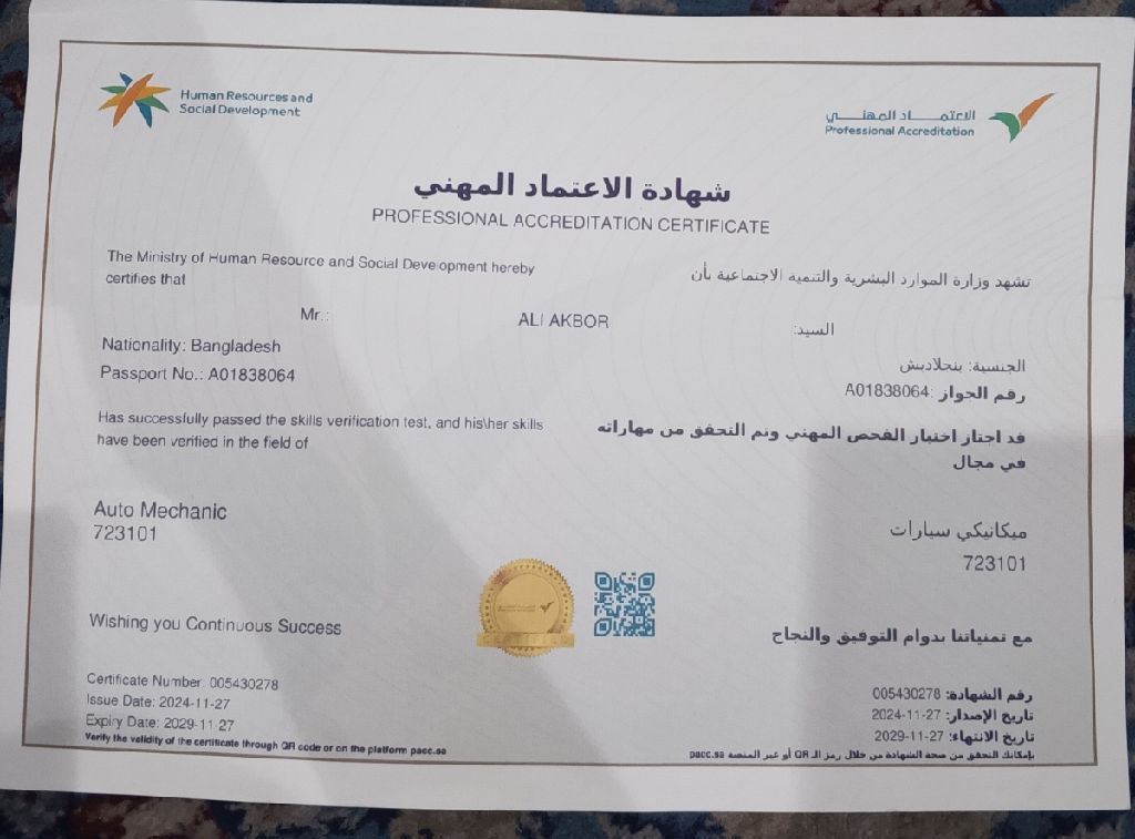 أنا ميكانيكي محركات ذو خبرة واسعة، ولدي 15 عاما من الخبرة. ابحث عن شركة جيدة للاستفادة من خبرتي، كما انني حاصل على شهادة ميكانيكي