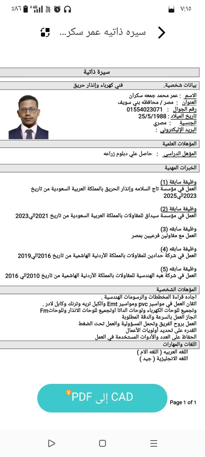 اسمي عمر فني كهرباء وانذار حريق وداتا إقامة سارية موجود في جدة