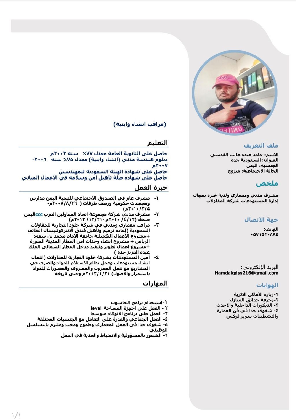 مشرف انشاء وأبنية ولدية خبرة بأعمال المستودعات بشركة المقاولات استلام مواد وتسليم وعمل مخزون ومصروف وحصورات’ وابحث عن عمل بشركة