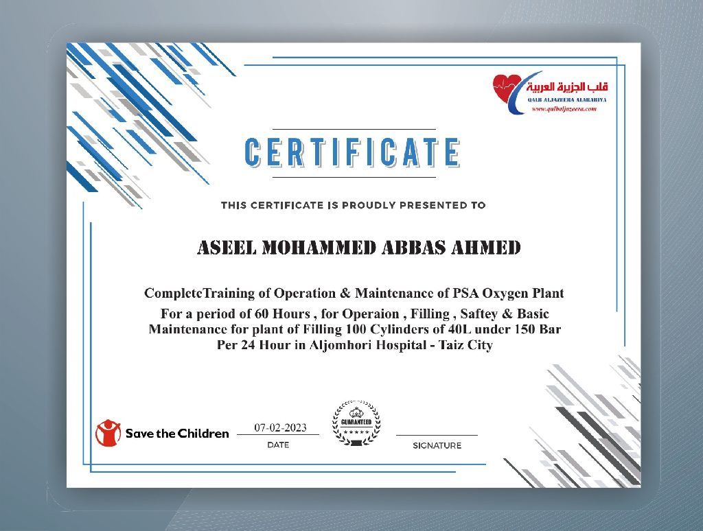 أنا مهندس محطات أكسجين وعامل أكسجين ولي الخبرة في الأكسجين
