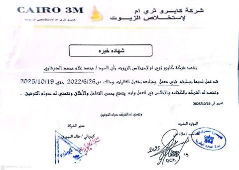 A Sudanese national with a technical diploma in mechanical engineering and seven years of experience in the food and pharmaceutical industries as a mechanical maintenance specialist according to ISO and JMP standards, in addition to strong supervisory and administrative skills Strong background in central air conditioning, fire systems, steam boilers, air compressors, procurement and warehousing