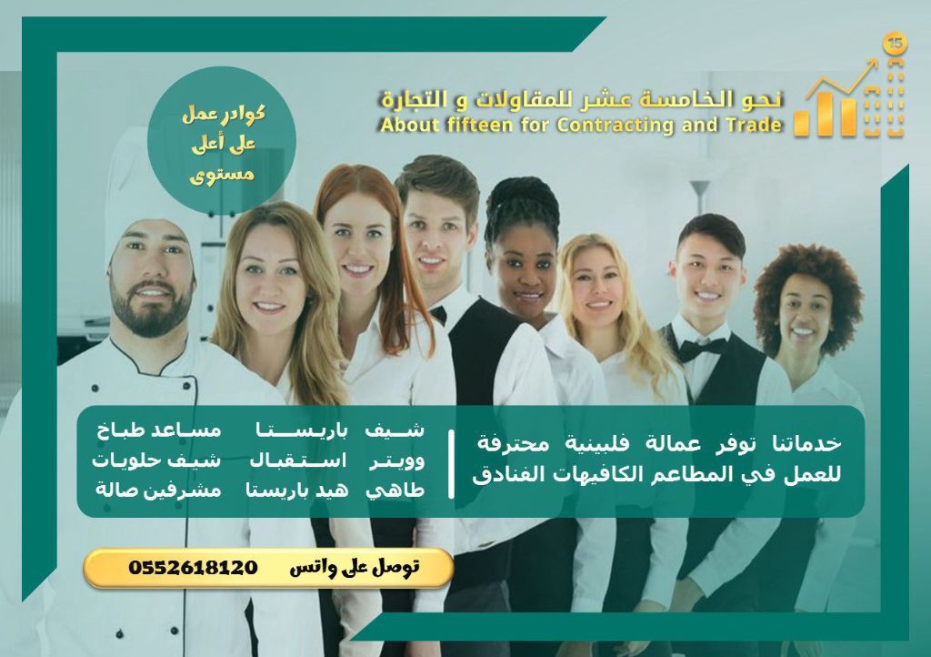 نقوم بتوفير أيدي عاملة من الجنسية الفلبينية على مستويات عالية من المهارة (كافيهات - مطاعم - فنادق - صالونات التجميل) معنا تستطيع أن تنقل عملك الى مستوى عالي من المهنية والاحتراف تواصل معنا الآن