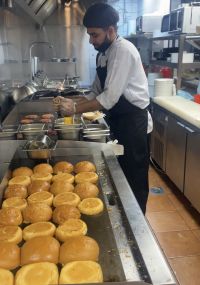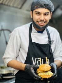 أنا جلال سر كار، أعيش في جدة. اعمل طباخا مساعدا محترفا في مجال الطهي. لدي خبرة سنة في مجال الطهي وسنة أخرى كمساعد طاه. عملت في قسم البرجر والسلطات والمقبلات والمعكرونة، لكنني اعمل بشكل رئيسي في قسم البرجر. اعمل الآن كمساعد طاه، وأشرف على المشرف. اعمل في هذا المطعم منذ ما يقرب من ثلاث سنوات