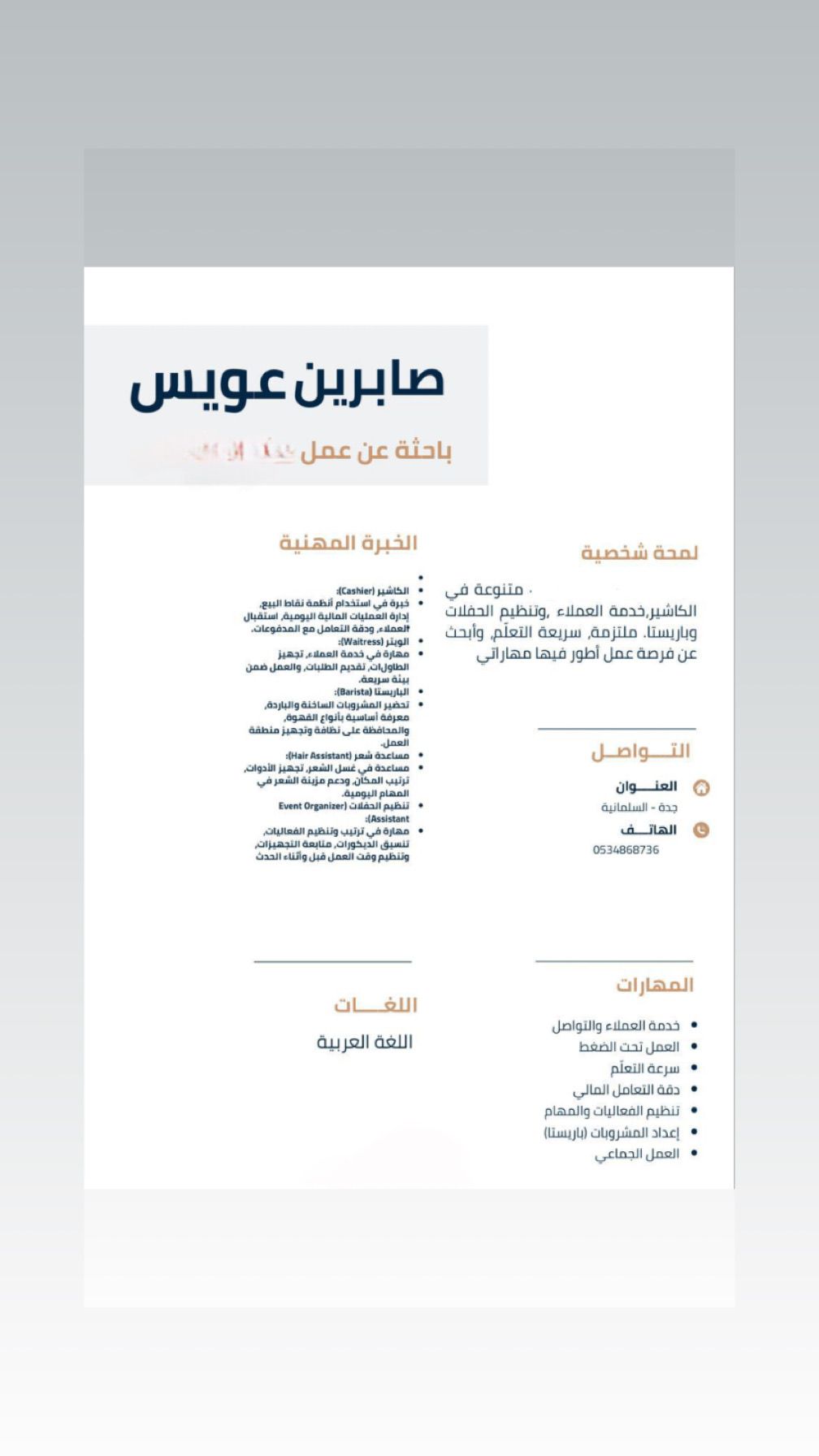 أنا في جدة مقيمة إقامة سارية أحتاج وظيفة في جدة وايتر باريستا خدمة العملاء كاشيرة