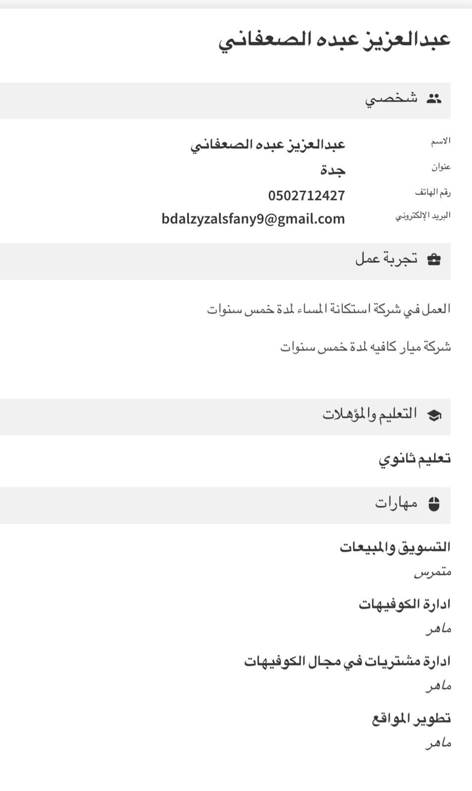 ابحث عن وظيفة في مجال كافيهات وتطوير محلات ومدير مشتريات