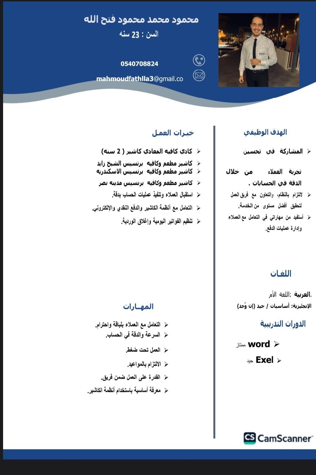كاشير خبرة أكثر من 6 سنين ومدخل بيانات سرعة ممتازة في الكتابة علي الكومبيوتر