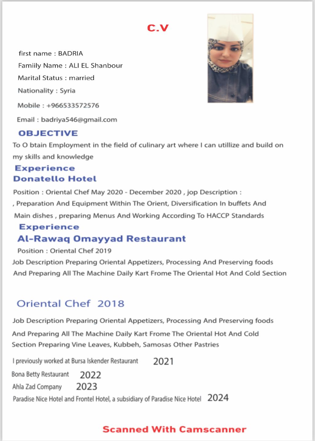 شيف سورية تبحث عن عمل في جدة سبق لي العمل في فنادق ومطاعم