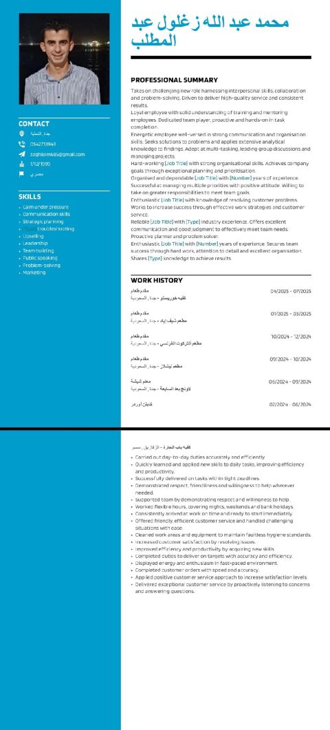 معلم عصير خبرة 9 سنوات جميع أنواع العصير وعندي خلطات خاصه فقط نقل كفالة ب أسرع وقت ممكن لأن الإقامة منتهية اختصار أريد شغل أنقل كفالة