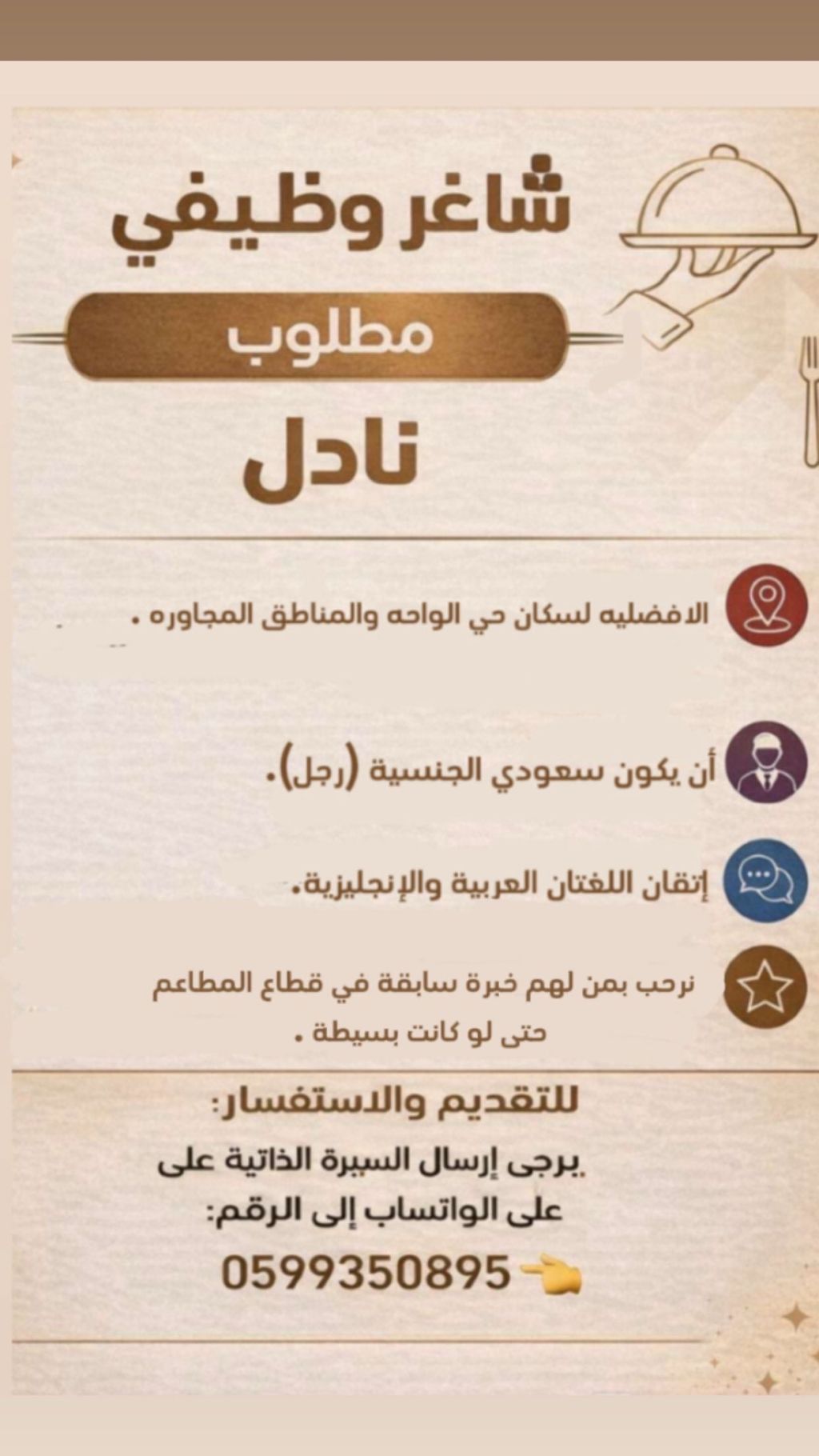 شاغر وظيفي وايتر بولفار حي الواحة (سعودي) التواصل واتساب الأولوية لسكان حي الواحة وجوارها