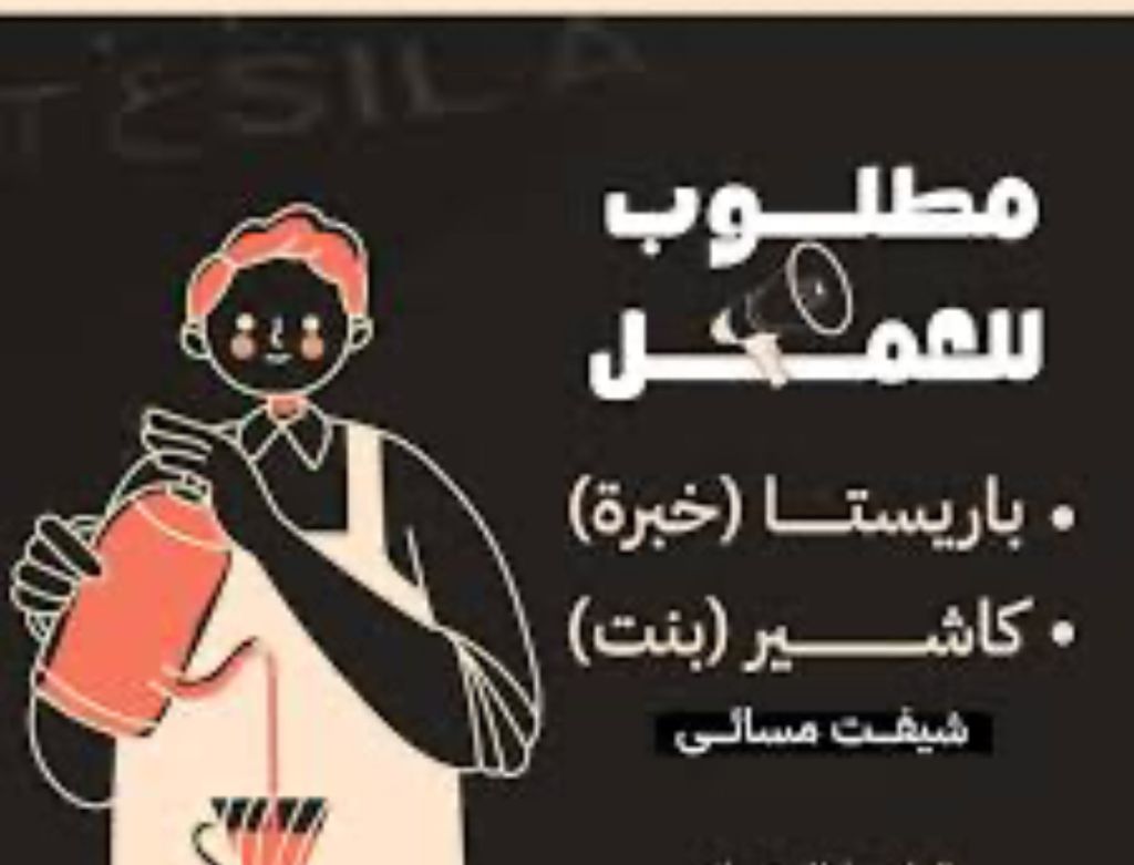 مطلوب للعمل في كوفي معروف (دريف ثرو مطلوب بنت كاشير وباريستا (حي الخمرة) مطلوب بنت كاشير وباريستا (حي الحريزات) مطلوب 3 شباب باريستا (الجنوب) الرجاء ارسال أل CV على الرقم الموضح