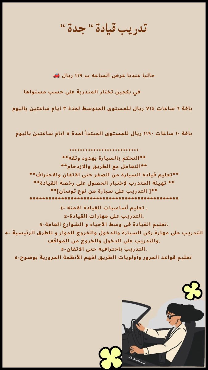 ادرب سواقة للبنات (في جدة) وعندي عرض الساعة ب 119