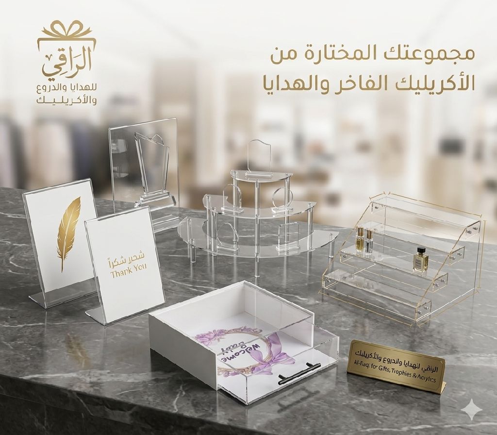 موجود جميع أنواع الاكريليك والدروع وبكسات الهدايا التذكرية