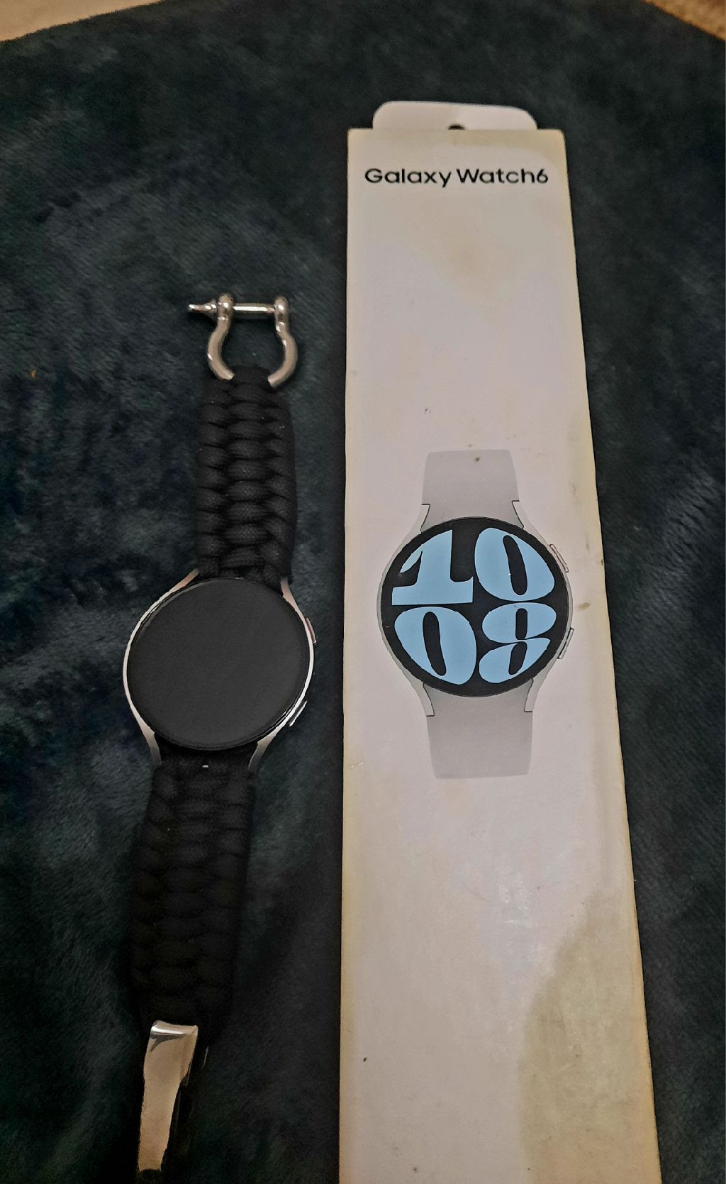 Samsung galaxy watch 6 الساعة حالتها مثل الجديدة تماما عليها سكرين حماية ومعها مشتمالتها الأصليه وعدد سترابات زيادة مطلوب 700 SAR قابل للتفاوض البسيط