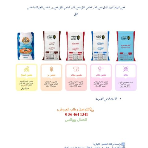 مؤسسة بركات ألحصيل يوجد لدينا دقيق فاخر مطاحن الأولة ودقيق المخابز بسعر الجملة والتوصيل مجانا الى أمام متجركم في جدة للتواصل وأتس