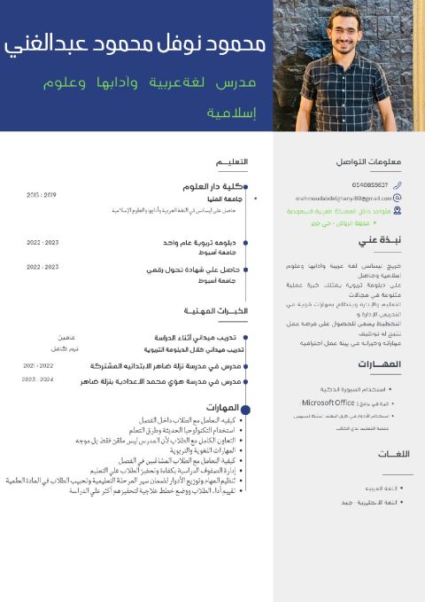 مدرس تأسيس ولغتي، حاصل على ليسانس في اللغة العربية وآدابها والعلوم الاسلامية، تأسيس الطلاب في القراءة والكتابة والإملاء بطريقة بسيطة وسهلة، تطوير المهارات لدي الطالب، متابعة دورية مع أولياء الامور، اختبارات لتقييم مستوى الطالب، متواجد في تبوك ابحث عن عمل