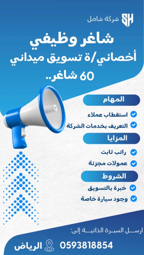 مطلوب أخصائي / ة تسويق ميداني للارسال السيرة الذاتية