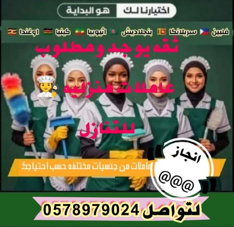 يوجد ومطلوب عاملات منزليه للنقل من جميع الجنسيات المختلفه نقل خدمات ونستلم ونواصل جميع أنحاء المملكة للنقل ثقة وانجاز وسرعة في المعاملة للتواصل والاستفسار واتساب واتصال