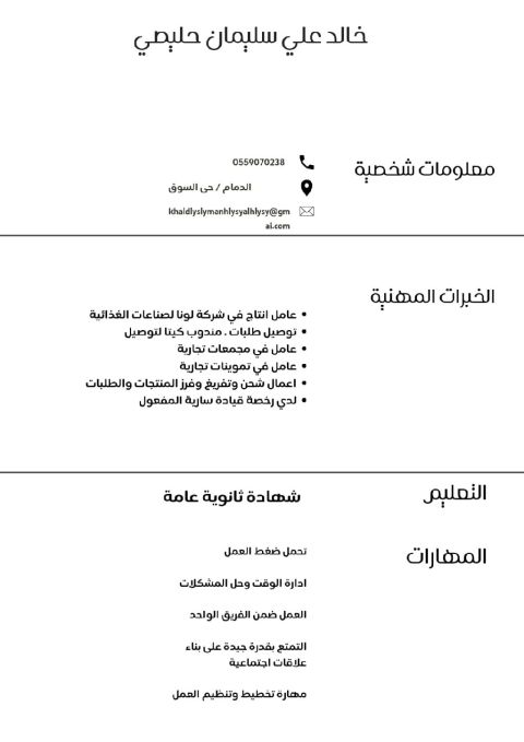 خالد يمني الجنسية متواجد في الرياض اقامتي مجدد سنة أجيد استخدام الكمبيوتر عملت في أكثر من عمل مثل شركة أدوات ومنتجاتها تدخين كمسؤول وبائع وفي مستودع ألعاب كأمين وغيرها وفي محل ألعاب أستطيع تغليف هدايا ألعاب ومحل بلاط وسيراميك وفترة بسيطة في مجال الانارة وغيرها الى عنده محل ومحتاج موظف أو كاشير أو استقبال أوشخص يدير محل يكلمني مستعد أتعلم أي شيء في أقرب وقت وبرضو مستعد انتقل الى أي مكان ما في مشكلة