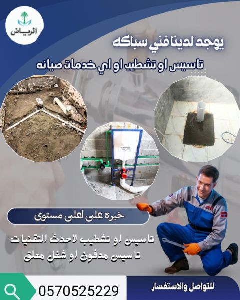 فني سباك تأسيس وتمديد مواسير المياه والصرف وتركيب الخزان وتركيب الكرسي وتركيب الدينمو والغطاس تركيب البزبوز تركيب الدوش وخدمة الصيانة في الرياض