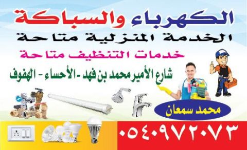 أنا اشتغل سباكه وكهرباء وسعر مناسب في أي وقت اشتغل وشغلي نظيف أسكن في الهفوف شارع حرض