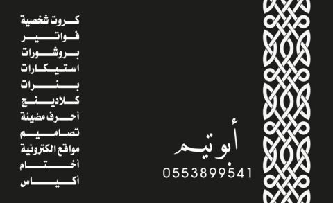 كروت شخصية فواتير بروشورات استيكارات بنرات كلادينج أحرف مضيئة تصاميم مواقع الكترونية أختام أكياس تركيب لوحات أحرف بارزة بأنوعها
