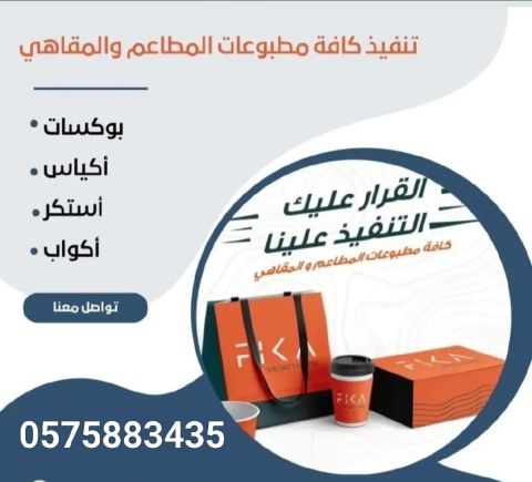تصميم وتنفيذ كافة المطبوعات الورقية والأستكر والأختام والاظرف والأوراق الرسمية والبنر ومستلزمات المطاعم والأحرف البارزة والدروع البوكسات حفر لايزر على المعادن طباعة تيشرتات بشكل احترافي وأسعار مناسبة