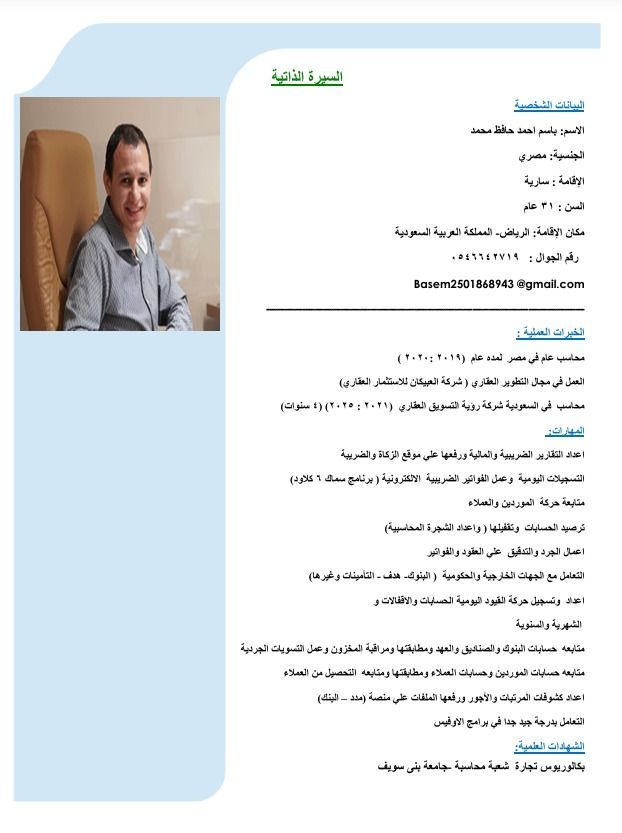 محاسب خبرة 4 سنوات في المملكة العربية السعودية في مجال التطوير والتسويق العقاري