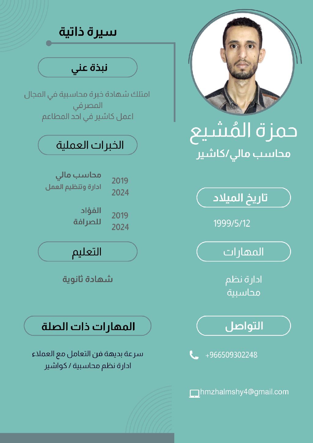 متوفر موظف كاشير على مستوى السرعة خبرة سنة