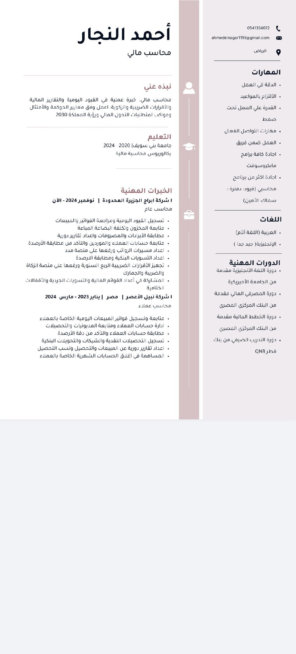 محاسب مصري خبرة 3 سنوات لدي القدرة على التعامل مع كافة البرامج المحاسبية وبرامج الأوفيس واعداد التقارير المالية والتسويات البنكية ومسيرات الرواتب ومتابعة العملاء والموردين ومتابعة المخزون وتقارير ضريبة القيمة المضافة وسبق لي العمل علي اعداد الميزانية ولدي خبرة في مجال الرخام والجرانيت وفي الشركات التجارية