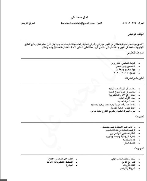 أنا كمال محمد ابحث عن وظيفة محاسب أملك خبرة لمدة ثلاث سنوات داخل المملكة العربية السعودية